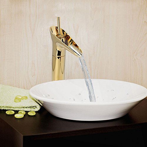 Fuloon バスルーム・キッチン・洗面台用 洗面用 蛇口 冷熱スイッチ付き 銅 31cmの高さ クラシック・アンティーク 4色選択可能 レトロ おしゃれ シングルレバー混合栓 (金色)