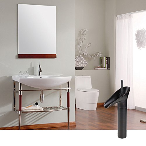 Fuloon バスルーム・キッチン・洗面台用 洗面用 蛇口 冷熱スイッチ付き 銅 31cmの高さ クラシック・アンティーク 4色選択可能 レトロ おしゃれ シングルレバー混合栓 (ブラック)