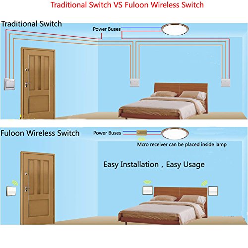 Fuloon ワイヤレス照明スイッチ リモートスイッチ 電池不要 配線なし 簡単設置が可能! ワイ ヤレス照明制御システム ヒューズ内蔵 過負荷保護