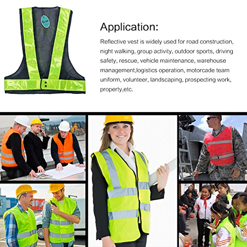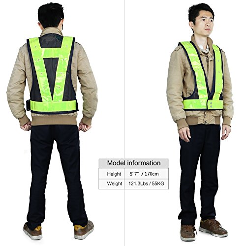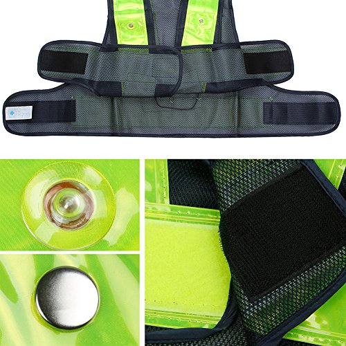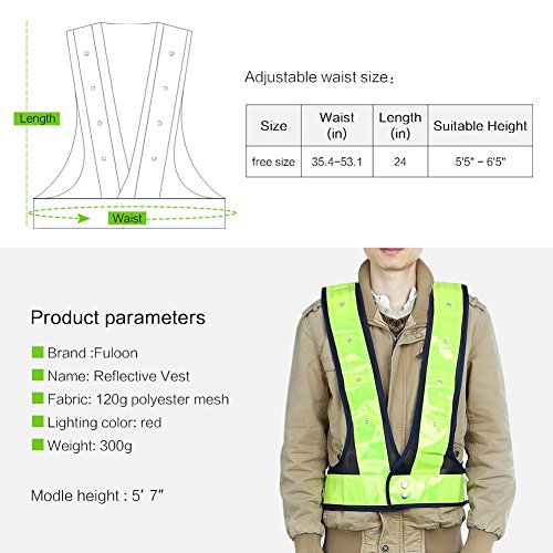 Fuloon 安全ベスト 光を反射する 夜間でも安全 高反射 約5cm幅の反射ストライプ 高輝度LED 16個付き 交通整理・道路メンテナンス・夜釣り 電池が付属しません (蛍光)