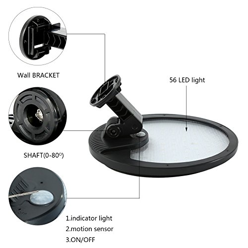 Fuloon 屋外センサーライト ソーラー式 太陽光充電 56LED 人感センサー 自動点灯 防水 電気不要 配線不要 簡単設置 屋根 軒下 玄関 壁など対応