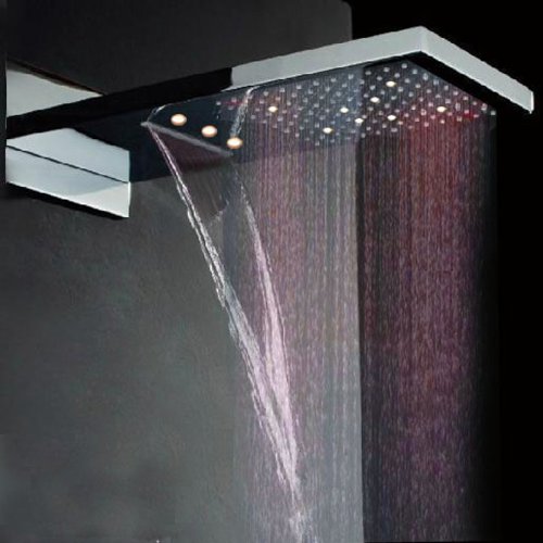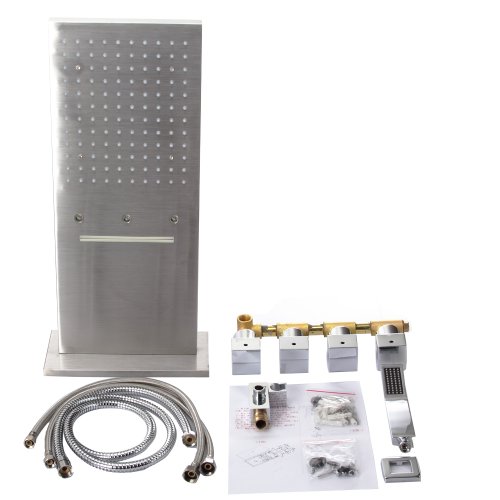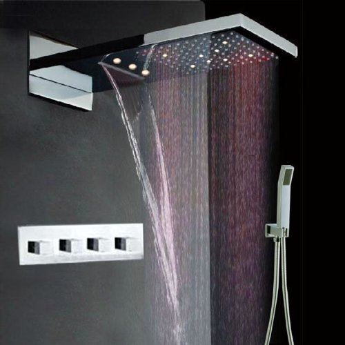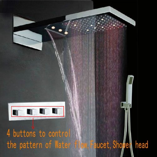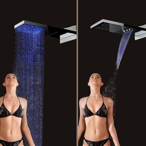 Fuloon 9 x 21.8 "ステンレススチールサテン壁マウントシャワー洗面バス降雨シャワーヘッドキット60万回耐久性セラミックバルブ3 LEDs 1セット(キットB )