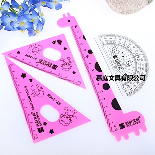 function-ruler新しいスタイルクリエイティブカートン図面定規学校ツール学生のためのかわいいキリンプラスチックストレートルーラーと三角定規 レッド 5646345082773