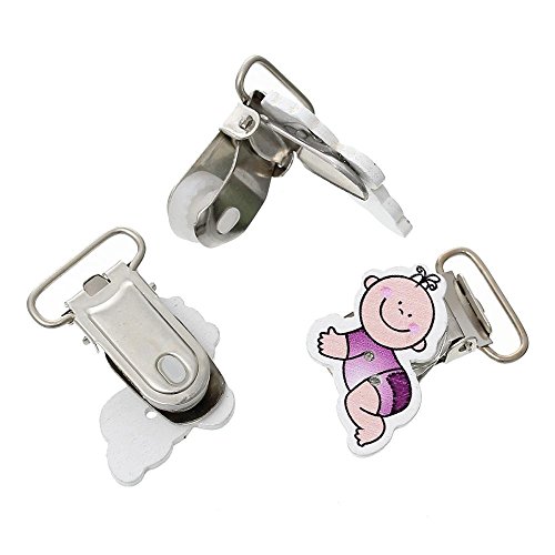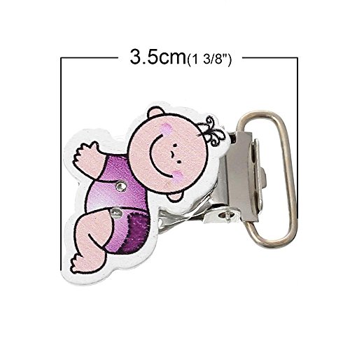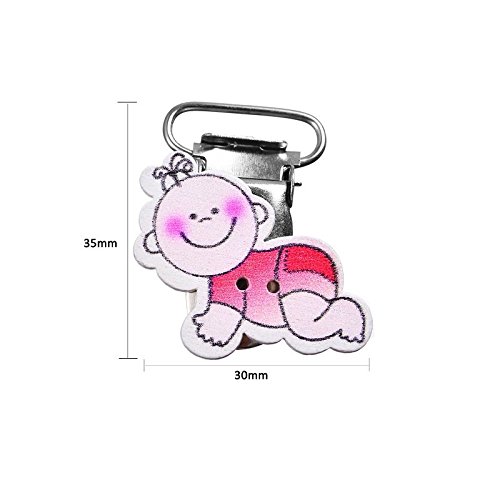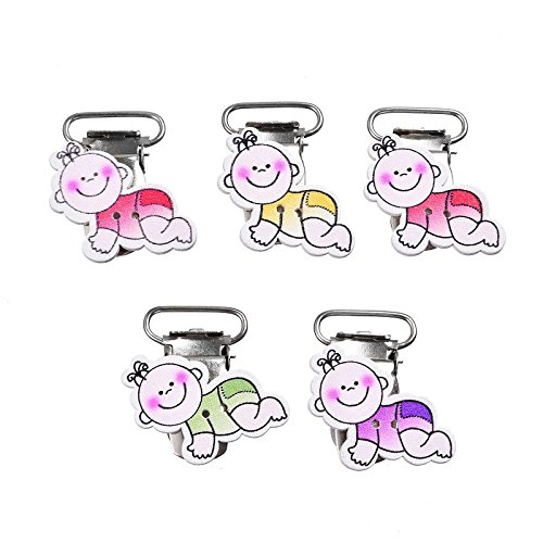 funnytoday365 5点ロット35 x 30 mm木製おしゃぶりクリップキュートMentalホルダーベビーシャワー混合色漫画赤ちゃんパターン