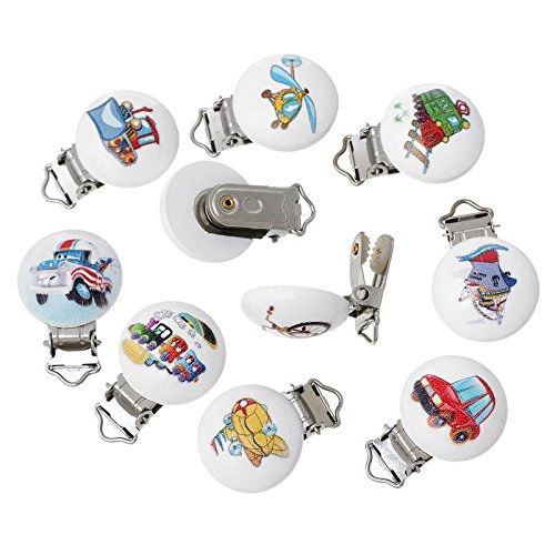 funnytoday365ランダム5点ロット木製かわいいパターン交通おしゃぶりクリップラウンドatランダム29 x 44 mm Mentalホルダーfor Baby