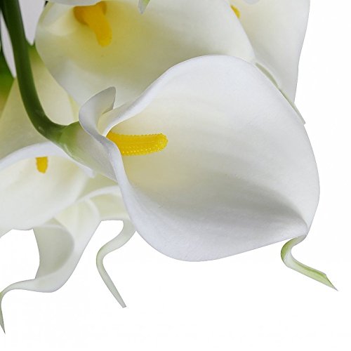 funnytoday365 10ヘッドホワイトカラーリリー柄人工ブライダルウェディングブーケヘッドラテックスリアルタッチ人工花ウェディングデコレーション