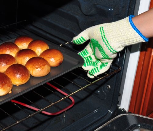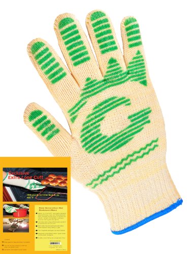 Made of Dupont Nomax and Kevlar Heat Resistant Fiber which could stand heat up to 480 degree Fahrenheit. Interior layer of soft doubleknit 100 percent cotton;Flexible glove structure provides tremendous protection for hand and qirst, excellent for kitchen, BBQ, heat resistance; yard and picnic;None-Slip Silicone Palm technology provide firm grip;Five Finger Design Bring the Max. Flexibility to Hand;2 Gloves Value Pack