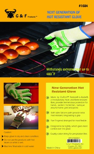 - G & F 1684L Dupont Nomex & Kevlar Heat Resistant Gloves, Oven Gloves, BBQ Gloves, Large, 1 Pair