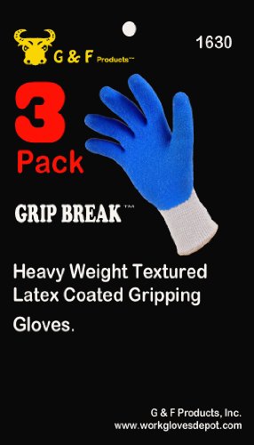 G & F 1630 Heavy Duty Rubber Coated Work Gloves, Blue, Medium, 3 Pair Pack by G & F