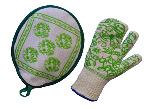 - Package contain: 1 three finger oven mitt and 1 potholder