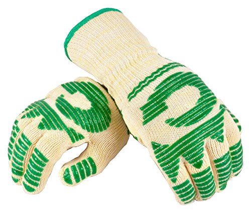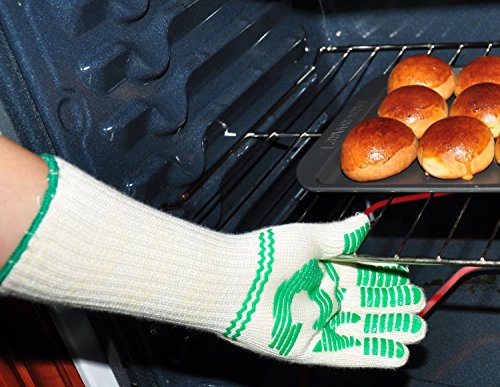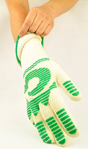 - Unique Silicone coating due to the silicon texturing of the five fingers both side. Effortless to take off Baking gloves or to put on swiftly just as Oven Mitts.