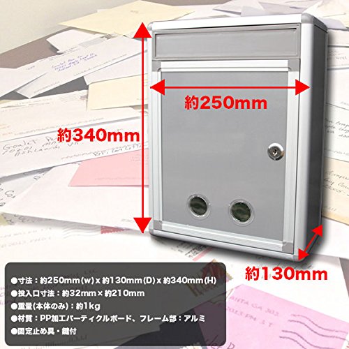 カギ付き 軽量 アルミ製 レターボックス シンプルデザイン 郵便受け ポスト メールボックス 新聞受け 止め具