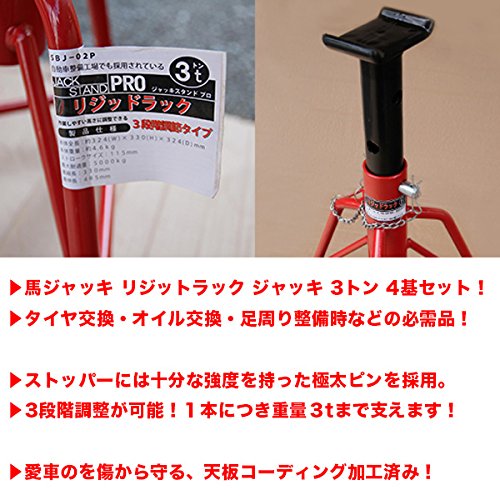 ジャッキスタンド 馬ジャッキ リジットラック 3t 4個セット 3段階調整 ウマ ジャッキアップ 車 タイヤ 交換 自動車整備 メンテナンス 車整備 工具