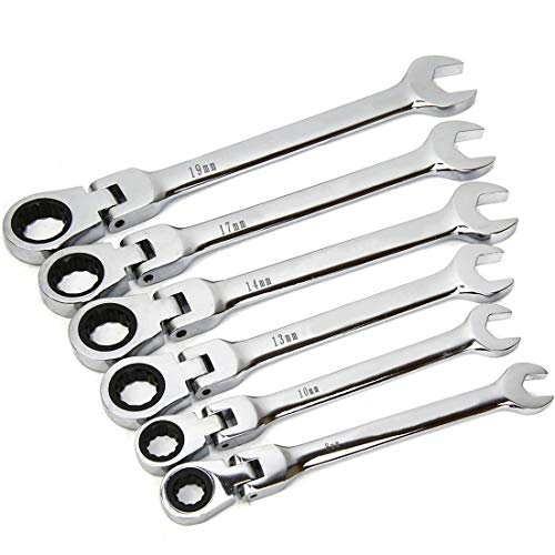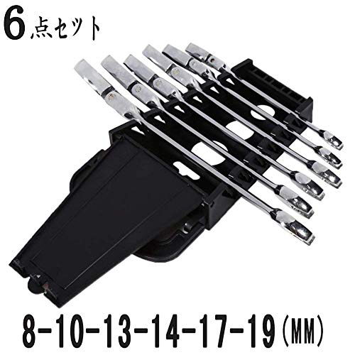 GAWOOW フレックスラチェットレンチセット 首振ラチェット 72ギア (6点セット 8~19mm)