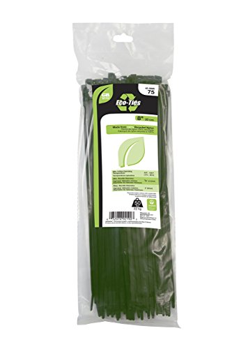 Gardner Bender 42-308R Eco Cable Tie, 100-Percent Post-Consumer Recycled Nylon Resin, 8" Long, 2" Max Bundle Dia, Dark Green, 50 lb Tensile (75 Pack) [並行輸入品]