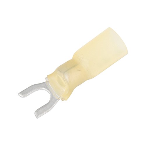 Resists salt water, oil, gasoline and other environmental contaminants. Use the Gardner Bender 12 - 10 awg, #8 - 10 stud size yellow heat-shrink spade terminals (5-pack) to help insulate and protect wire connections from pullout, moisture and abrasion. The terminals feature heat-activated adhesive melts and flows to create a waterproof seal, making the terminals resistant to salt water, oil, gasoline and other environmental contaminants. They are rated at 600-volts maximum for building wiring and 1,000-volts maximum for signs and fixtures and have a temperature rating of 167 degrees Fahrenheit.