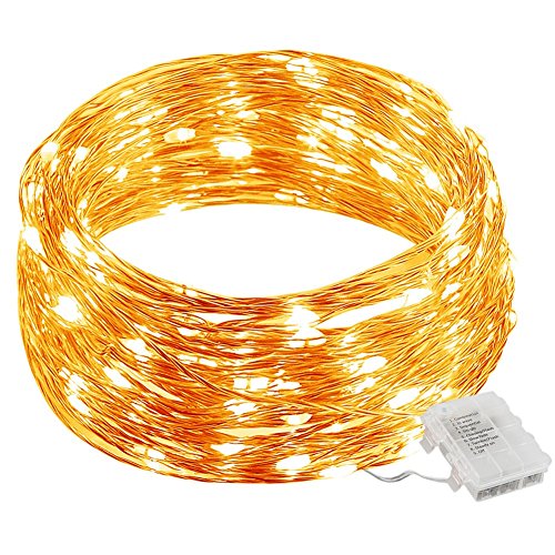 GDEALER 8 Modes String Lights 33ft 100LED Copper Wire Fairy Starry String Lights Battery Powered with Remote Control for Outdoor, Indoor, Christmas Waterproof warm white(Battery NOT INCLUDED) (1) [並行輸入品]