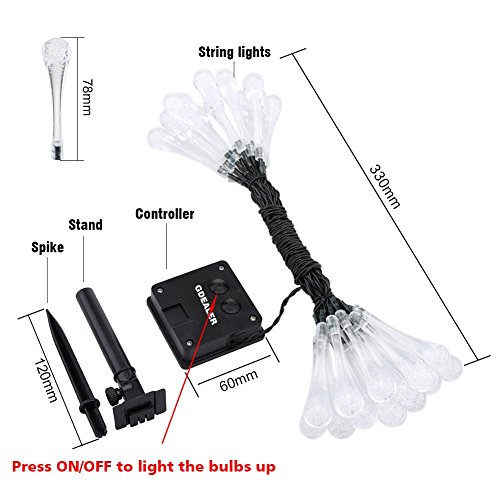 Solar Outdoor String Lights,GDEALER 20ft 30 LED Water Drop Solar String Fairy Waterproof Lights Christmas Lights Solar Powered String lights for Garden, Patio, Yard, Home, Christmas Tree, Parties [並行輸入品]