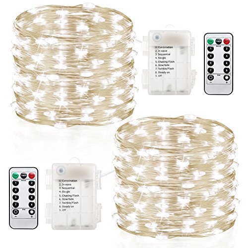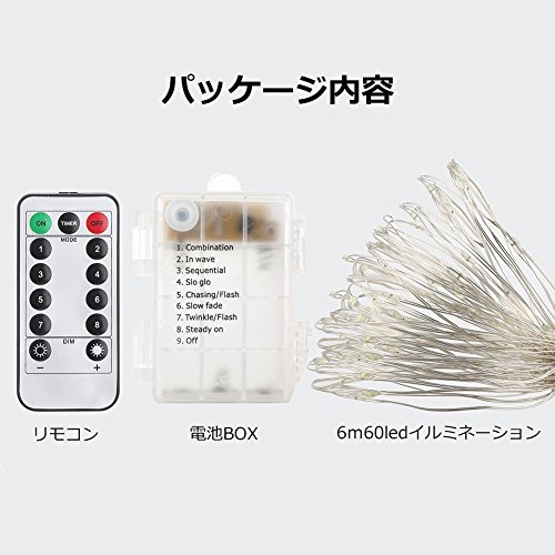 イルミネーションライト led GDEALER 6m60led 2個セット 電池式 イルミネーション ストリングライト フェアリーライト ジュエリーライト クリスマス 飾りライト リモコン付き 8パタンで切替可 点滅 ワイヤーライト アウトドア 室内 屋外 結婚式 パーティー 防水 ホワイト