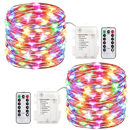 イルミネーションライト led GDEALER 6m60led 2個セット 電池式 イルミネーション ストリングライト フェアリーライト ジュエリーライト クリスマス 飾りライト リモコン付き 8パタンで切替可 点滅 ワイヤーライト アウトドア 室内 屋外 結婚式 パーティー 防水 虹色
