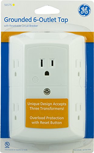 Product Description 6 outlets Accepts 3 bulky AC adapters & 3 standard plugs Ideal for home offices & home theaters 15A circuit breaker shuts off power to the outlets in case of an overload or short circuit & includes a handy reset switch located on top of the unit; UPC : 043180565754 Shipping Dimensions : 7.25in X 4.60in X 2.25in Estimated Shipping Weight : 0.452 From the Manufacturer Grounded 6-Outlet Tap is ideal for home offices and home theaters.