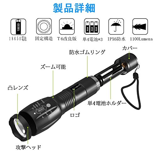 - ✅日本本日発送;二三日到着可能;改良懐中電灯、小型で携帯に便利、IPX 防水、ズーム機能、使いやすいです;雨の日、雨に濡れても、ご使用には影響ありません。日本語説明書が付属してあります。
