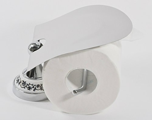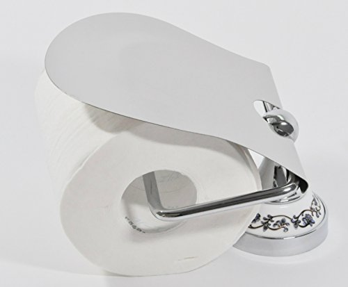(スリーボックス)ThreeBox トイレット ペーパー ホルダー アンティーク調 欧風 ヨーロピアン調 陶器 花柄 カバー 紙巻器 ねじ 取り付け おしゃれ 高級感 (シルバー)