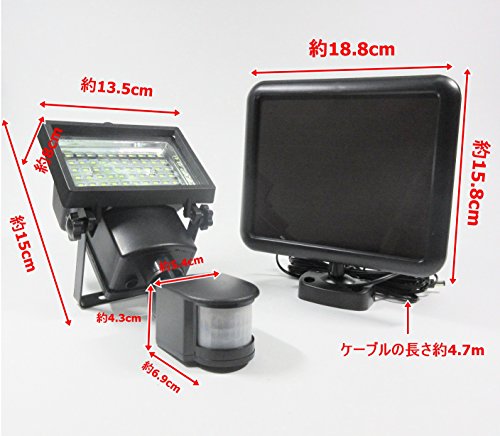 - ソーラーパネル が 分離型 なので、直射日光 が当たる場所を選択し設置できます。ケーブルの長さは約4.7mです。