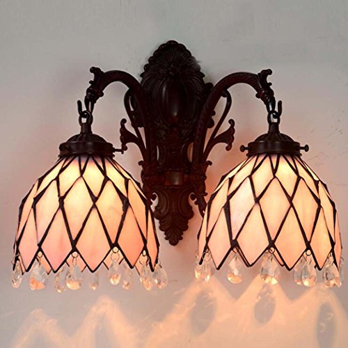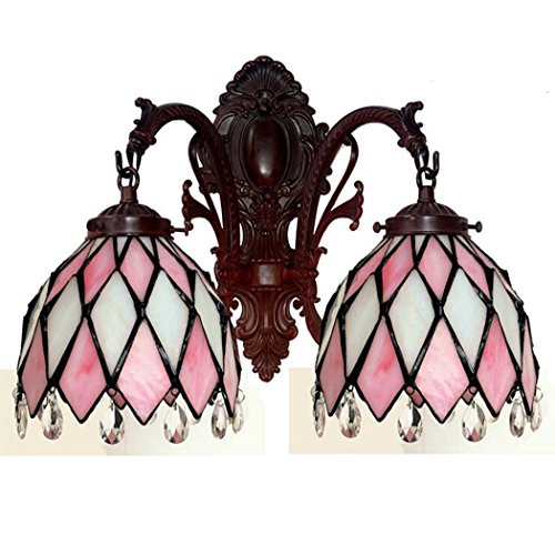 ティファニースタイルウォールランプ、ピンククリスタルガラスウォールランプ、リビングルームベッドルームアイスルダブルヘッドウォールライト