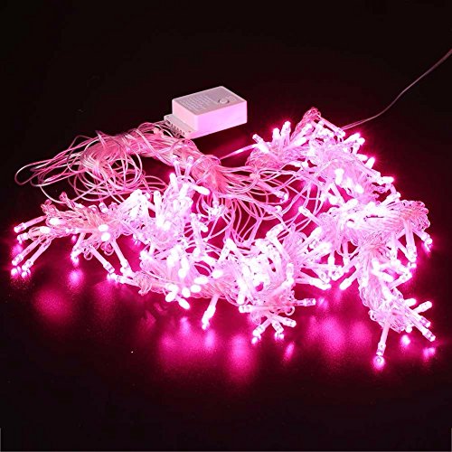 GLADLE 3MX2M 224LEDs クリスマスパーティー、ワードローブ、結婚式、学園祭、ガーデンパーティー、屋内外装飾用、LEDイルミネーション 飾りスター 防水国際基準IP65 LED カーテンライト 110V アメリカのプラグ (ピンク)