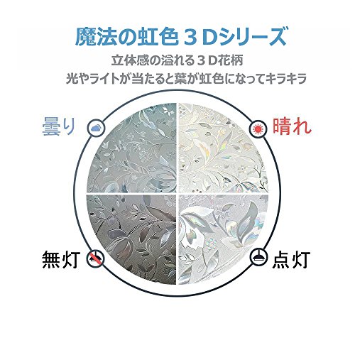 - 【3D草花木々シリーズ】立体感の溢れる3D花草デザインで、家の中でも自然のニオイがするような気がします。光やライトが当たると葉が虹色になってきらきらと輝いたりします。インテリアが変わるだけではなく、外からの視線は気にならなくなります。ご注意:完全目隠しフィルムをお探しのお客様は弊社のスリガスシリーズをおすすめします。