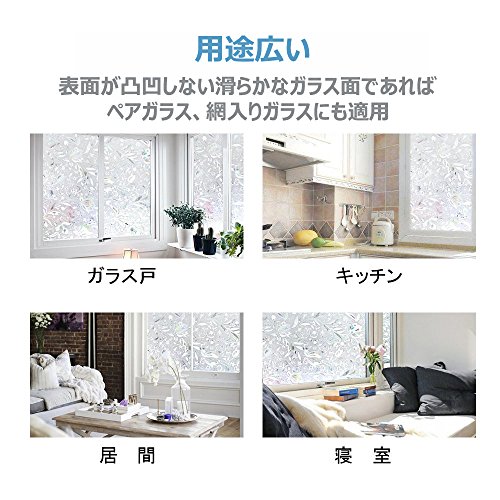 - 【適用場所&小物DIY】フリーカットなので、窓にピッタリはれます。そしてガラスだけではなく、スムーズで滑らかな平面にも適用するので、家のリメイクと小物のDIYにオススメ。ご注意:静電力で吸着するので、表面が凸凹したら、粘着力がかなり落ちます。