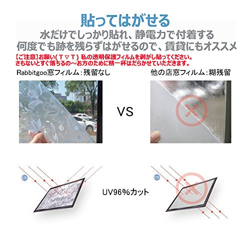 Rabbitgoo 3D ガラスフィルム 窓用フィルム 浴室目隠しシート 断熱 紫外線カット 無接着剤 再利用可能 プライバシーガラスフィルム DIY (44.5 x 200cm)