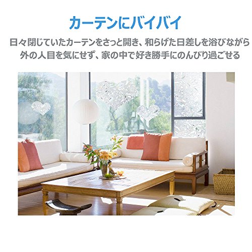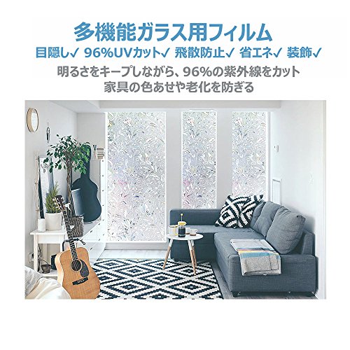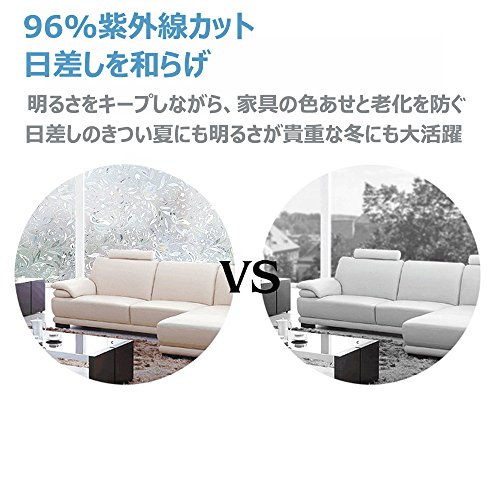 - 【簡単貼り付け&剥がせる】水だけで貼れるので、接着剤による化学的な放出や残り跡はありません。シワは出なくて貼り直せや繰り返し再利用が可能なので貼りやすいです。実験により、こちらの窓用フィルムは96%の紫外線をカットできるので、紫外線からご家族の健康を守り、家具の老化を防ぎます。