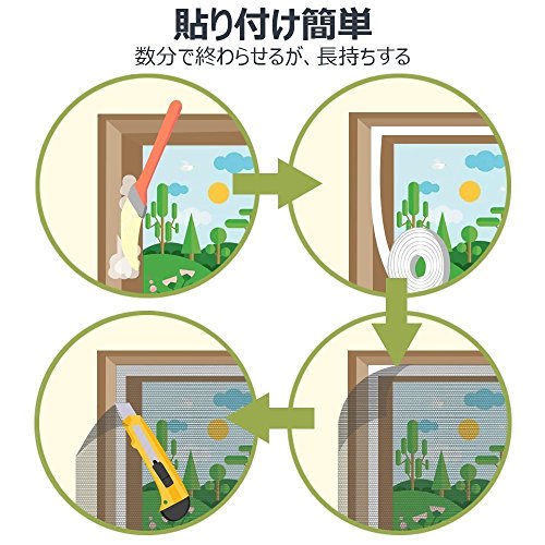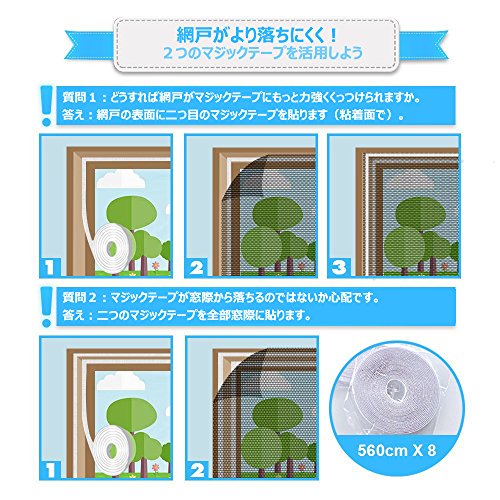 - 【4step装着・コンパクト】: 1窓際を掃除 2マジックテープを貼る 3網戸をくっつける 4余りをカット→簡単で手間かかりません。使わない時は手洗い(30℃以下)して折りたためばどこにも収められます!