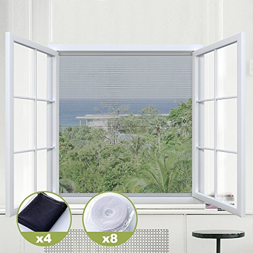 Rabbitgoo 簡易 網戸 内開き窓用 2枚の値段で4枚を買う 面ファスナー倍増 夏 虫よけ 防塵 塵対策 張り替え カット 手洗いOK マジックテープ式 DIY キット 4枚セット(黒 130 x 150cm)