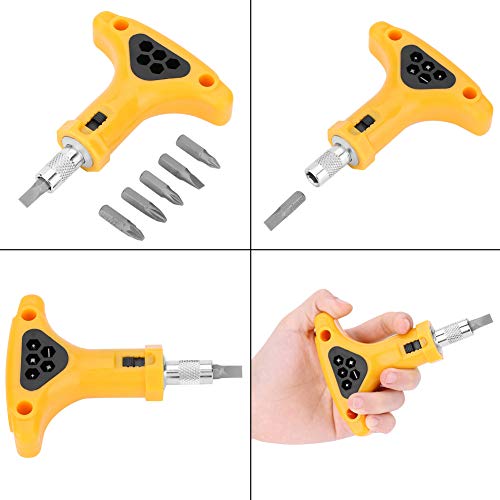 ドライバービットセット、省力型5本スクリュービット+ Tタイプレンチアンチスリップ精密ヘキサトライアングルラチェットスクリュードライバービットセット