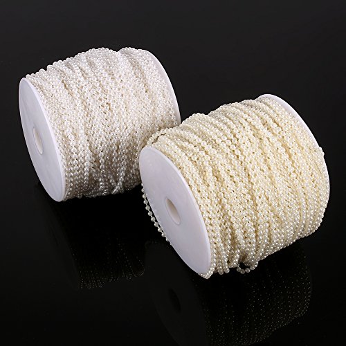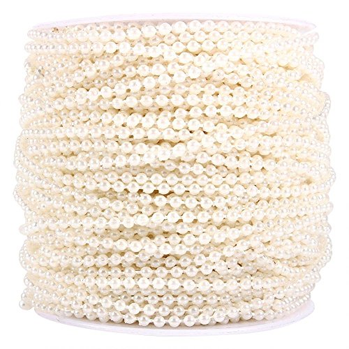 gloglowベージュ/ホワイトパールビーズチェーン、3 mm人工パールビーズバルクwith釣りラインのウェディングセンターピースガーランド装飾、50 M/ロール ベージュ GLOGLOWpnegkqc9u6-02