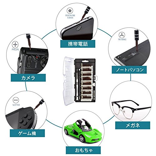 - 【適用場合】:携帯電話、コンピュータ、時計、メガネ、ハードドライブ、プリンター、シェーバー、扇風機、モデル、自転車などに対応できます。用途に応じて先端のビットを付け替えて、1セットで様々の用途に適用できます。