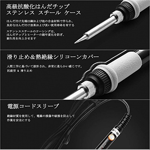 - 長時間作業可能:長時間の作業にも使いやすいハンダコテです。ヒントは5種類付属しており、ネジを回すことで、工具無しで交換が可能です。