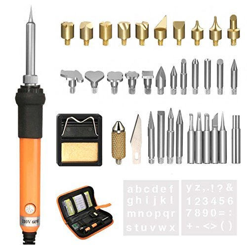 gochange 37pcs木製Burning &はんだごてキット、incl調節可能温度はんだ付けはんだアイアンペン、15 xウッドBurningヒント、16 xヒント、2 xステンシル、コンバータ、スタンドとキャリーバッグ