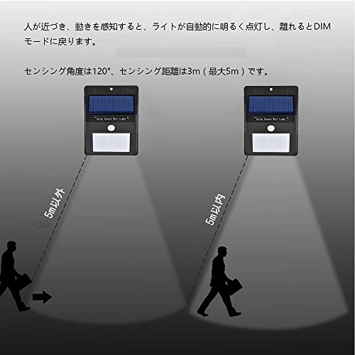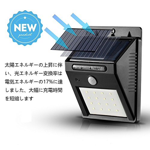 - 3. ソーラー充電:自然の力でエコ充電するLEDセンサーライトです。(人感センサーが反応しない限り点灯はしません)電気代は永久にゼロ。環境にやさしい商品です。