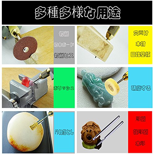 - 模型工作、ヒスイ、彫金、瑪瑙、アクセサリー工作、核彫刻、木彫など作業に可能。研磨、彫刻、切削、穴開け・艶出しや仕上げなどの作業で幅広く使用されます。