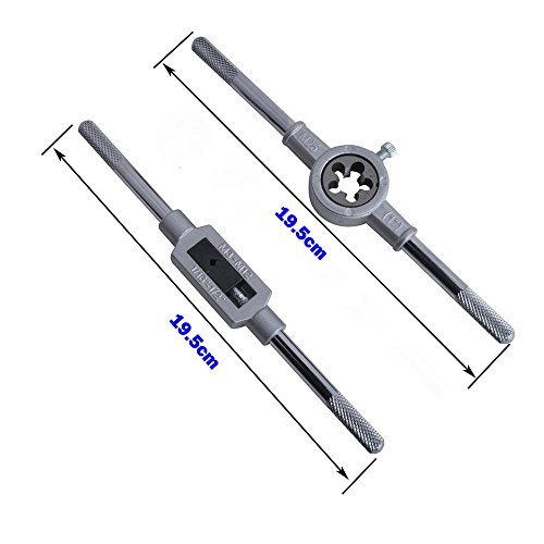 - 材質:高速度のスチール製で ;タップハンドル適用範囲:M3-M12のタップセット; 長さ:19.5cm;ダイスハンドル径:M25(2.5cm/1");長さ:19.5cm