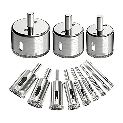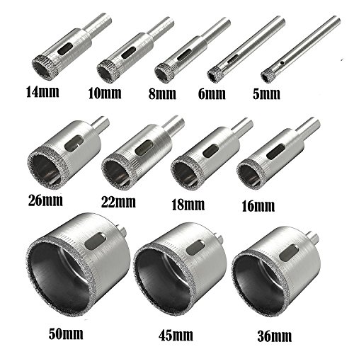 ハイエンド ホールソー ガラス タイル 穴あけ ダイヤモンド コアビット 12本セット 5mm 6mm 8mm 10mm 14mm 16mm 18mm 22mm 26mm 36mm 45mm 50m