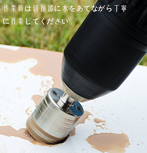 - 作業時は切削部に水をあてながら丁寧に作業してください。ガラスドリルビットをご使用の時、高速の回転で高熱を発生しますのでビットを壊さないように水をかけながらご使用ください 。