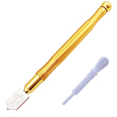 GOOMAND 超硬オイル硝子切り 切断工具 滑り止め取っ手のスチール製刃、オイル補給のガラスカッター 切断板厚:5~15mm 【ゴールデン】