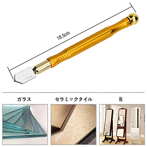 - 板ガラスや鏡板の直線切・曲線切に最適、適用範囲:フラット ガラス セラミックタイル、全長(mm):185、材質:刃部 特殊硬質合金鋼 柄 アルミニウム合金、カラ:ゴールドー