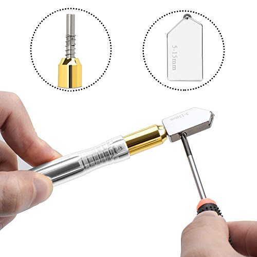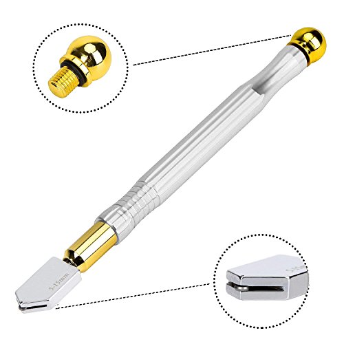 GOOMAND 超硬オイル硝子切り 切断工具 滑り止め取っ手のスチール製刃、オイル補給のガラスカッター 切断板厚:5~15mm 【シルバー】