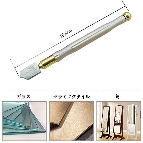 - 板ガラスや鏡板の直線切・曲線切に最適、適用範囲:フラット ガラス セラミックタイル、全長(mm):185、材質:刃部 特殊硬質合金鋼 柄 アルミニウム合金、カラー:シルバー